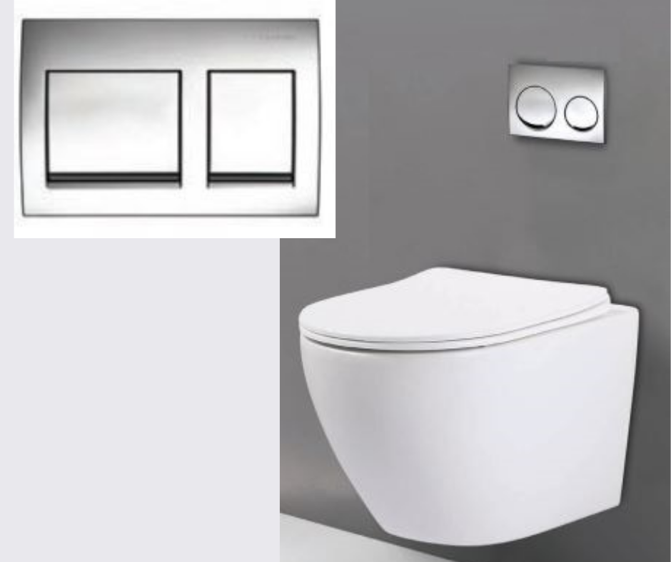 • סט מיכל הדחה לקיר בלוקים +אסלה+לחצן מרובע לבן/כרום